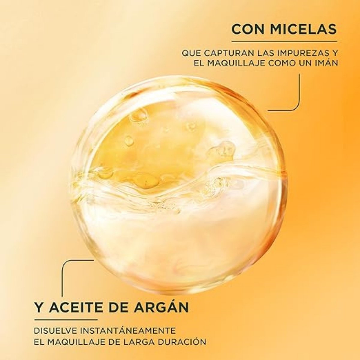 Agua micelar bifásica GARNIER en formato 100ml, enriquecida con aceite, perfecta para remover maquillaje waterproof sin esfuerzo mientras nutre la piel.