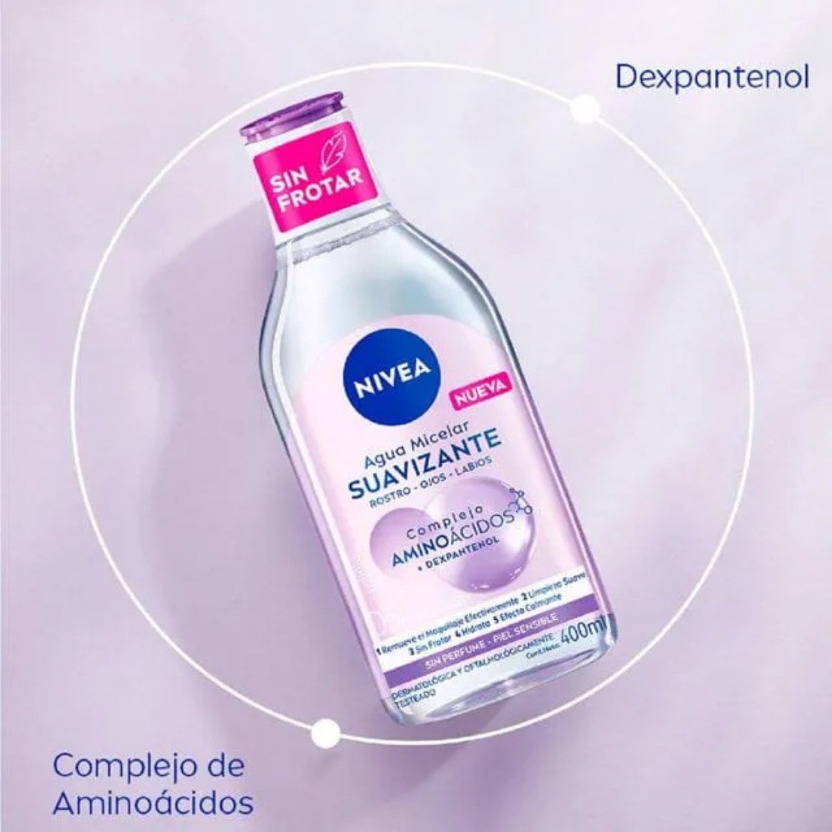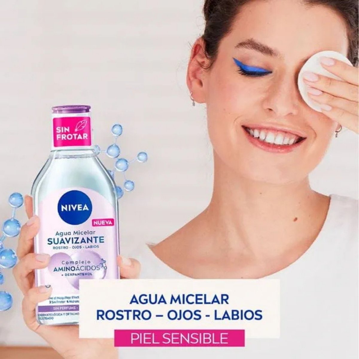 Agua micelar NIVEA 400ml especialmente formulada para piel sensible, limpia suavemente mientras calma y protege la piel.