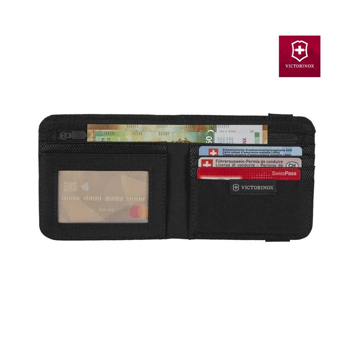 Billetera Victorinox bi-fold resistente, perfecta para uso diario con diseño moderno y funcional. Ideal para oficina o regalo.