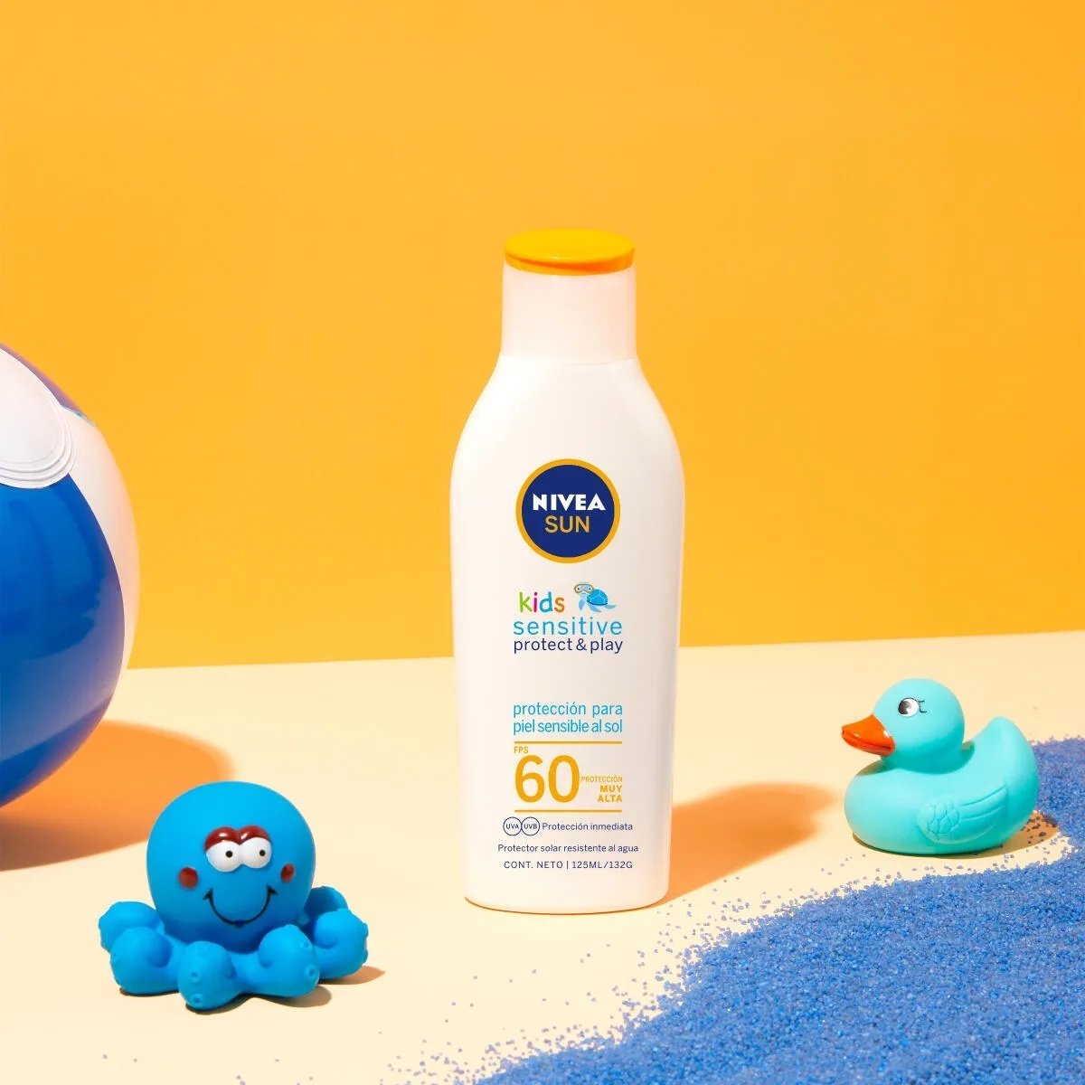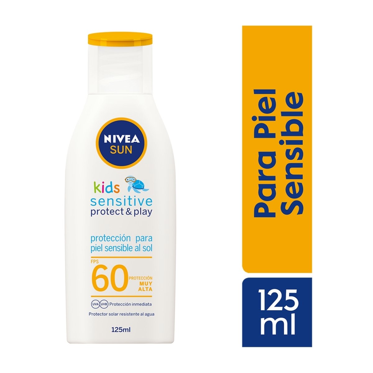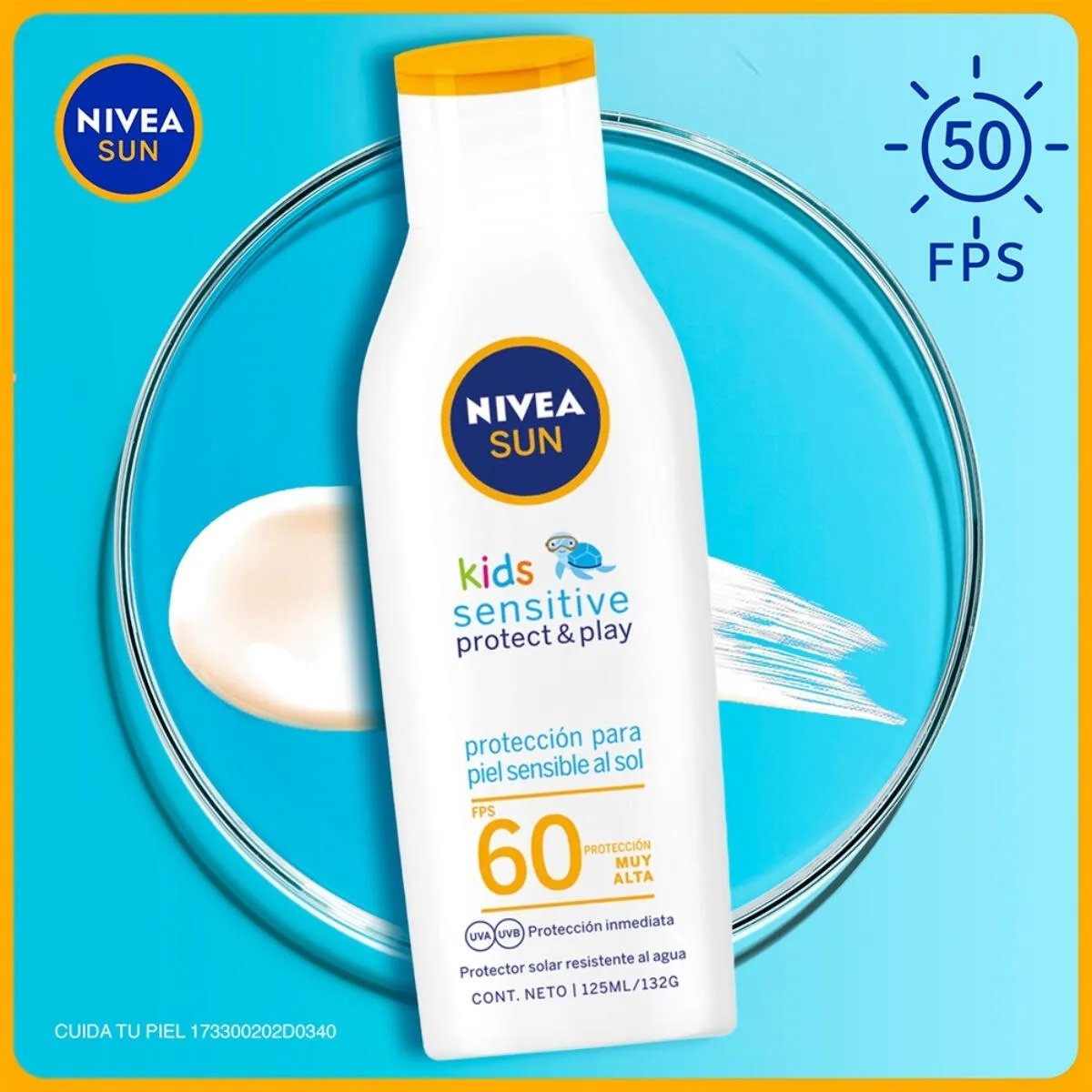 Bloqueador solar NIVEA FPS 60 para bebés y niños que protege eficazmente contra rayos UV, con fórmula suave y resistente al agua.