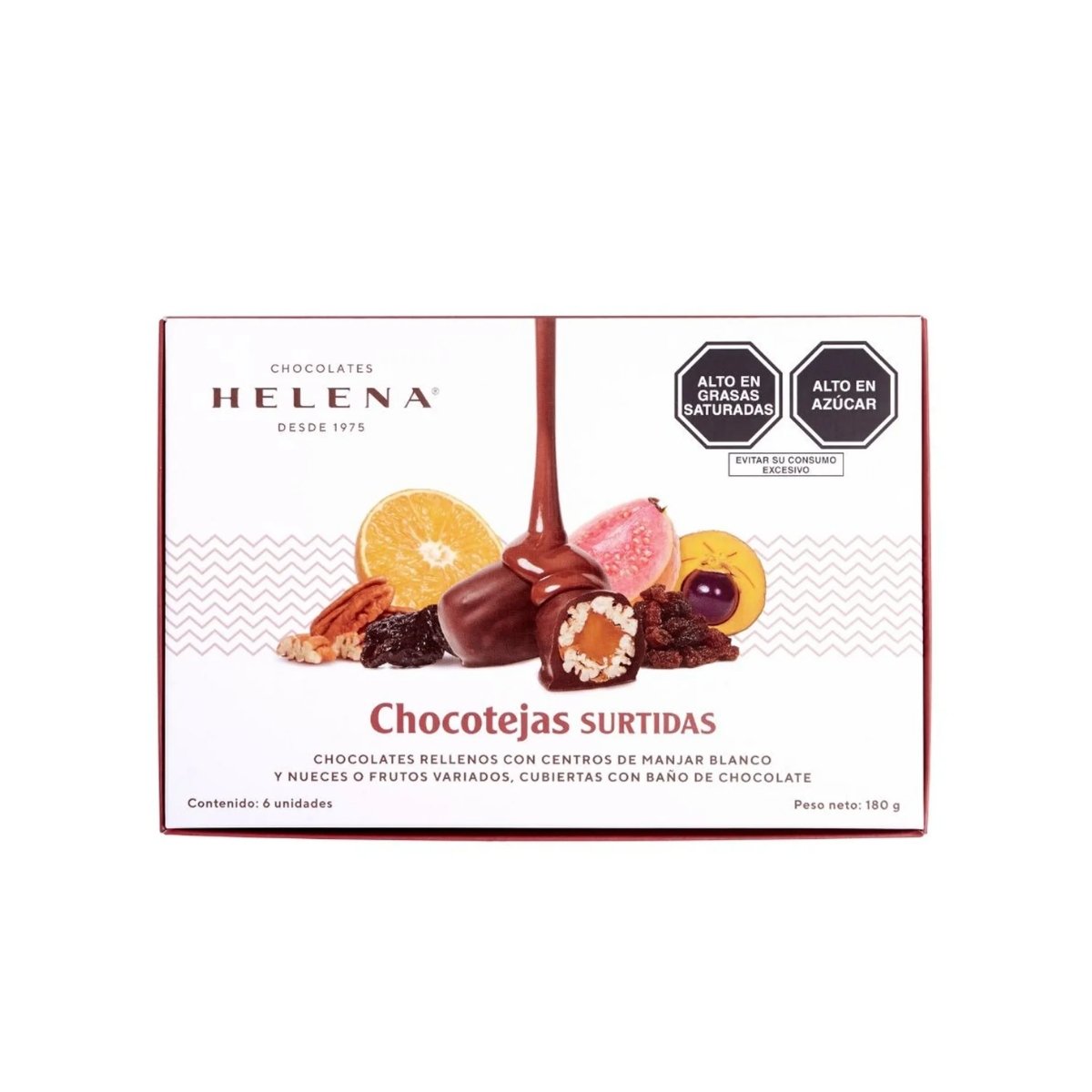 Disfruta la variedad de chocotejas surtidas con CHOCOLATE HELENA en caja de 6 unidades, perfecta para degustar distintos sabores.