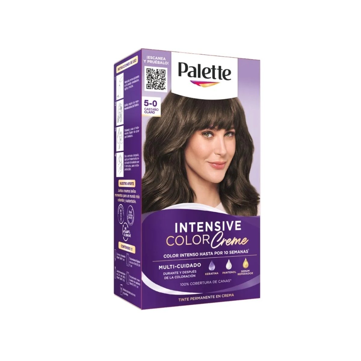 Consigue un look natural y luminoso con el TINTE PALETTE Castaño Claro 5-0 en presentación dúo con oxidante incluido. Su fórmula en crema facilita la aplicación, brinda cobertura total de canas y deja el cabello suave, brillante y con color duradero desde la primera aplicación.