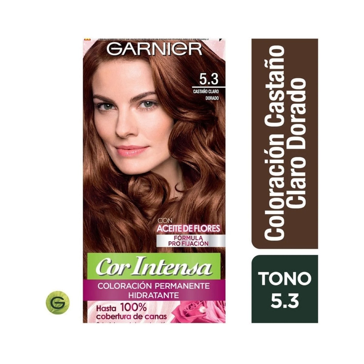 Tinte GARNIER castaño claro dorado 5.3 que aporta calidez, brillo y luminosidad al cabello. Fórmula de color intensa que ofrece larga duración y cobertura uniforme.