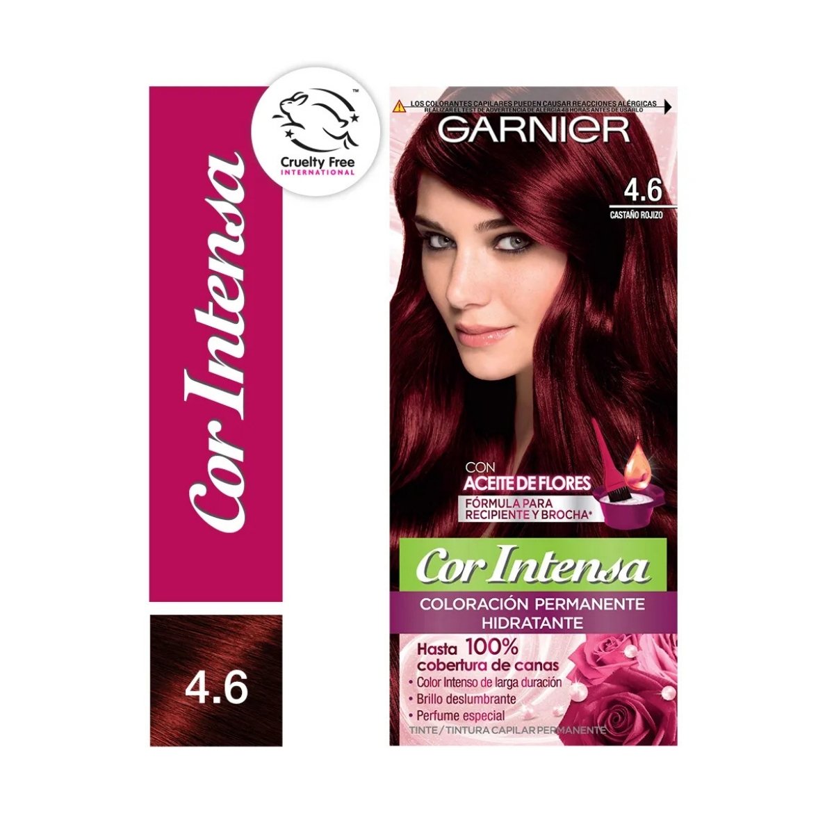 Tinte GARNIER castaño rojizo 4.6 con reflejos vibrantes que aportan calidez, personalidad y brillo al cabello.