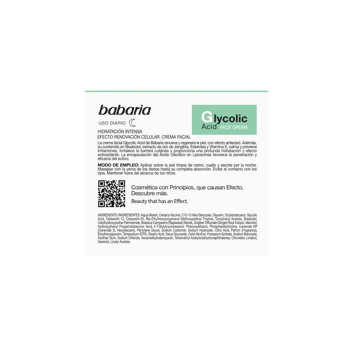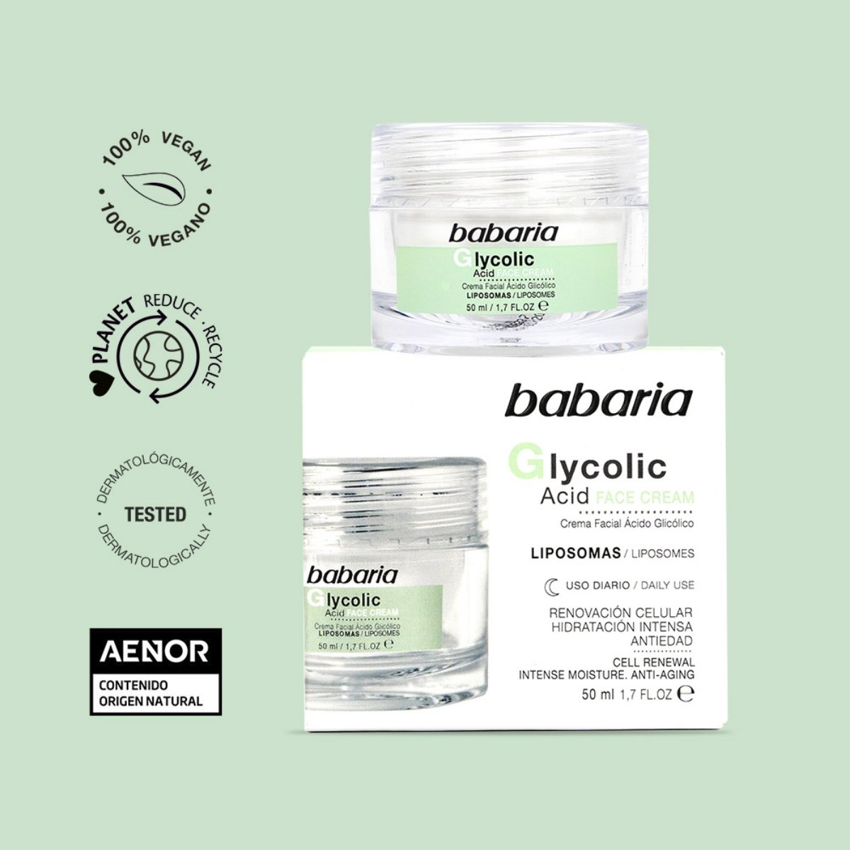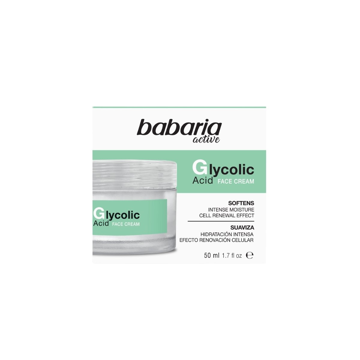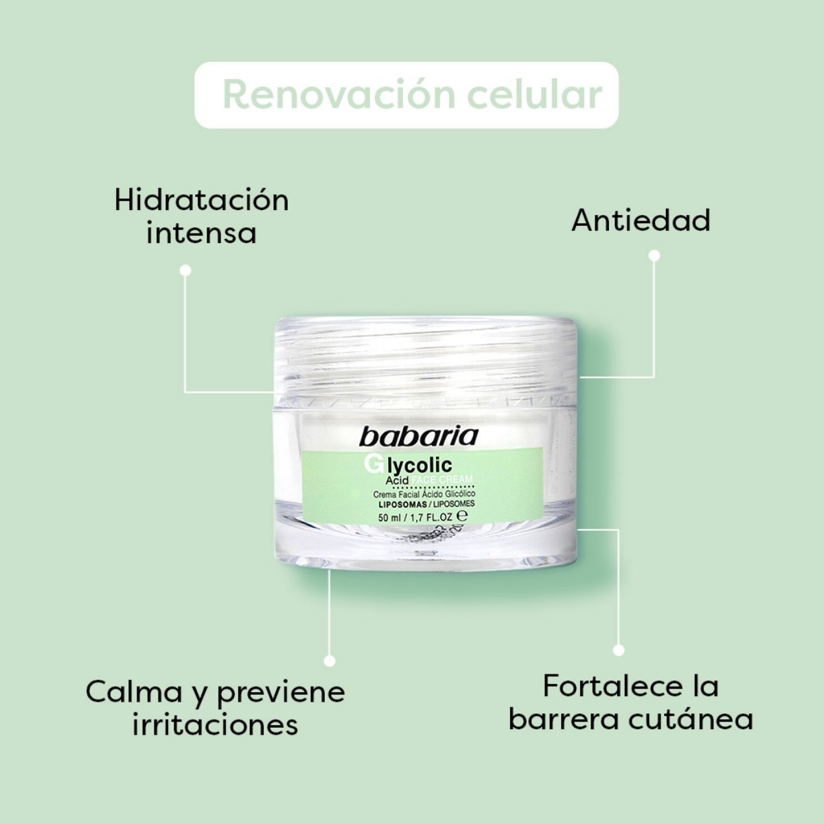 Renueva la piel con crema facial BABARIA con ácido glicólico, mejora textura, luminosidad y reduce imperfecciones.