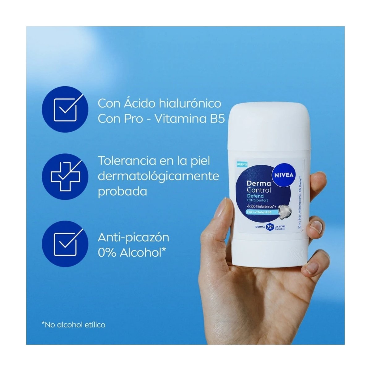 Desodorante en barra NIVEA Derma Control Defend que brinda protección avanzada contra el sudor y bacterias, cuidando la piel con tecnología dermatológica y larga duración.