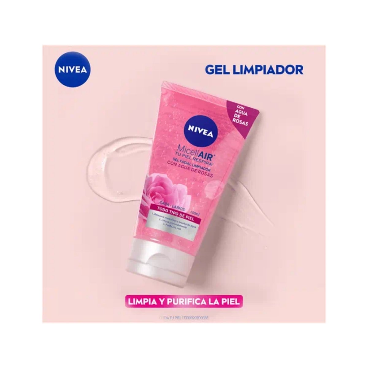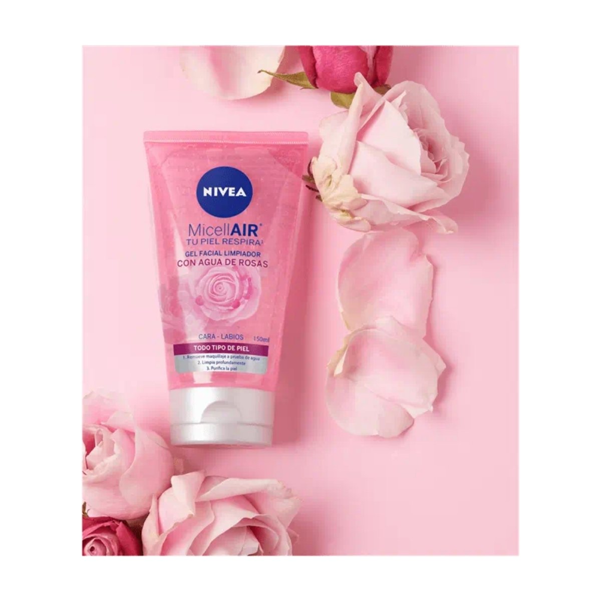 Gel limpiador facial NIVEA con agua de rosas que purifica y refresca la piel.
