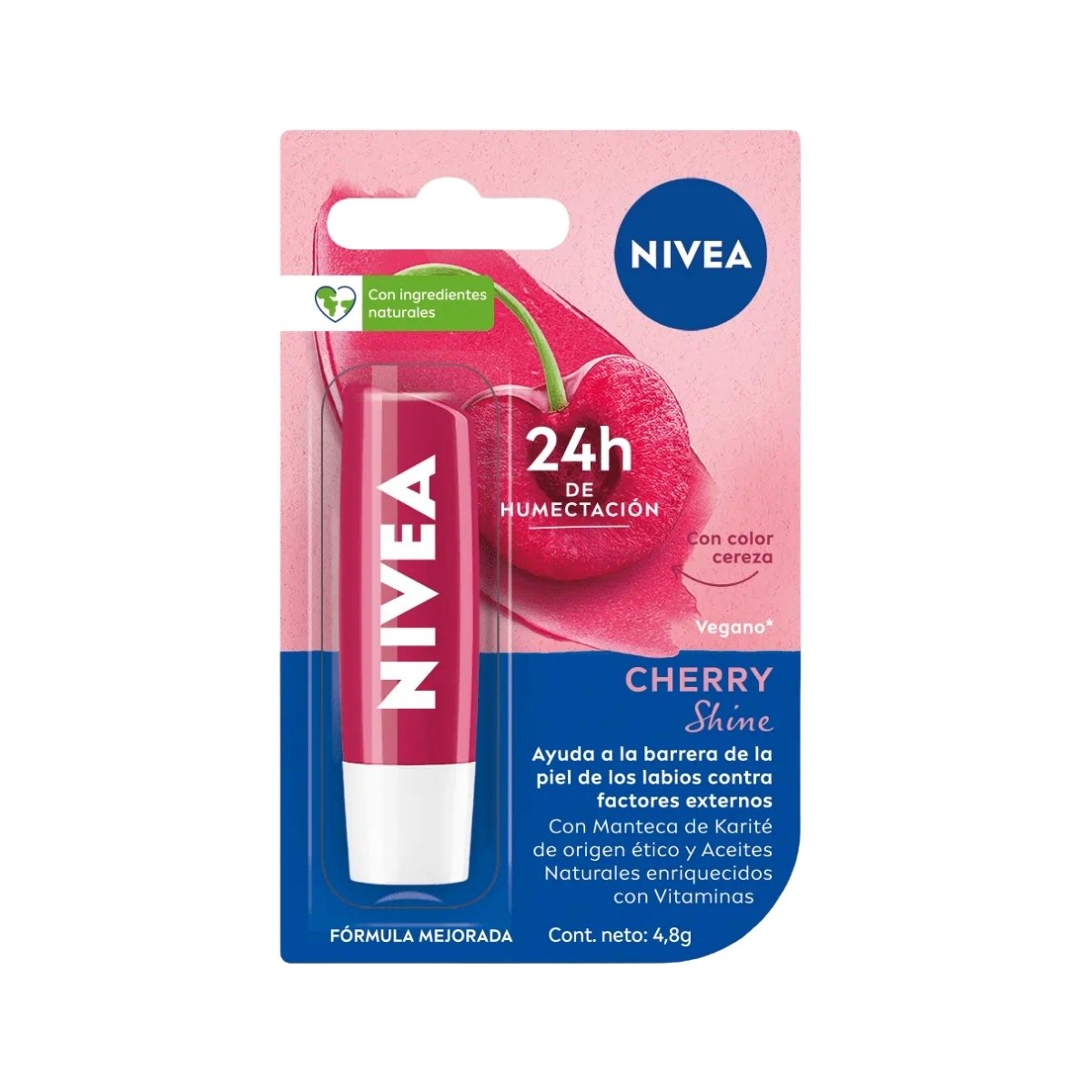HIDRATANTE LABIAL CHERRY SHINE NIVEA, hidratan intensamente, protegen los labios y aportan un toque de color y brillo natural.
