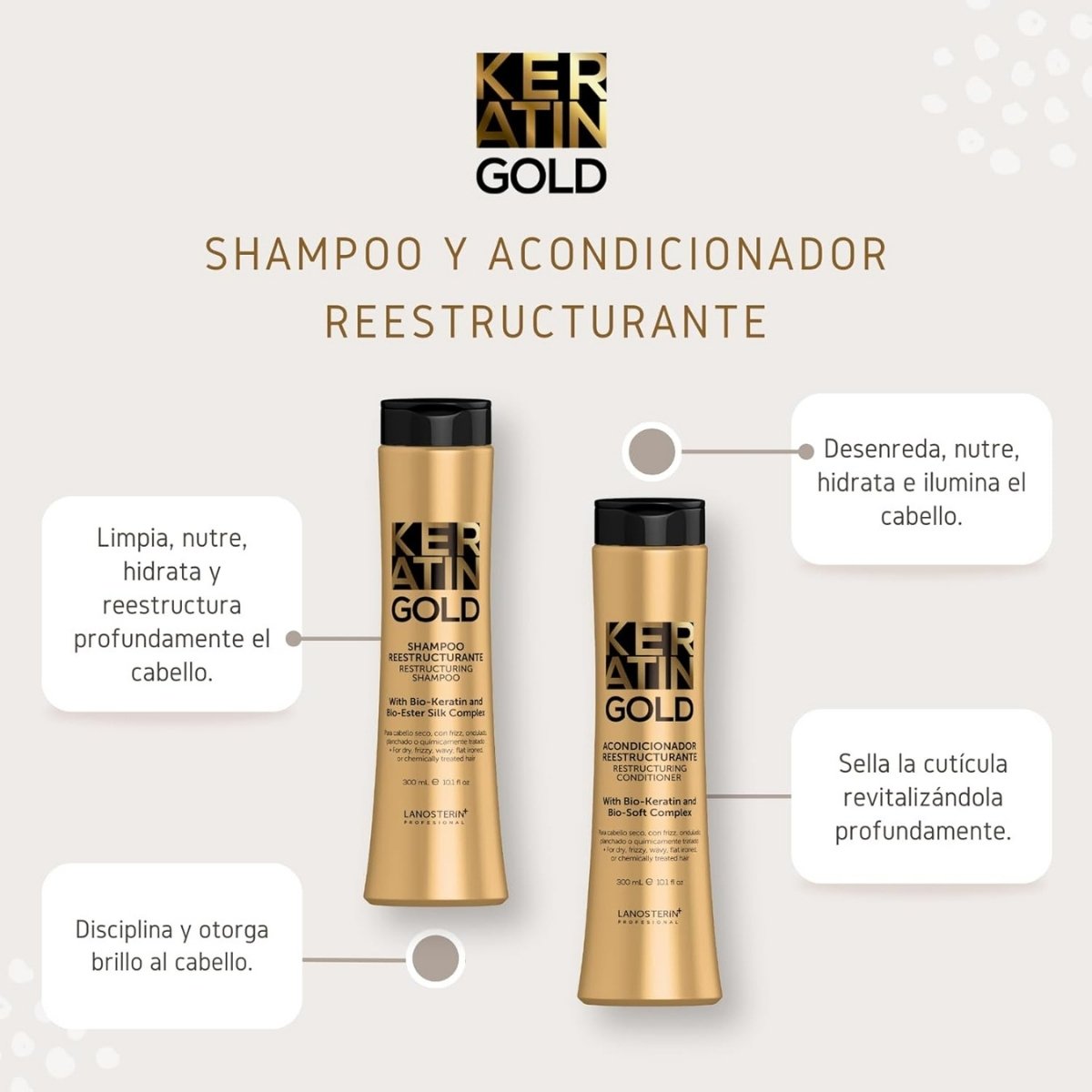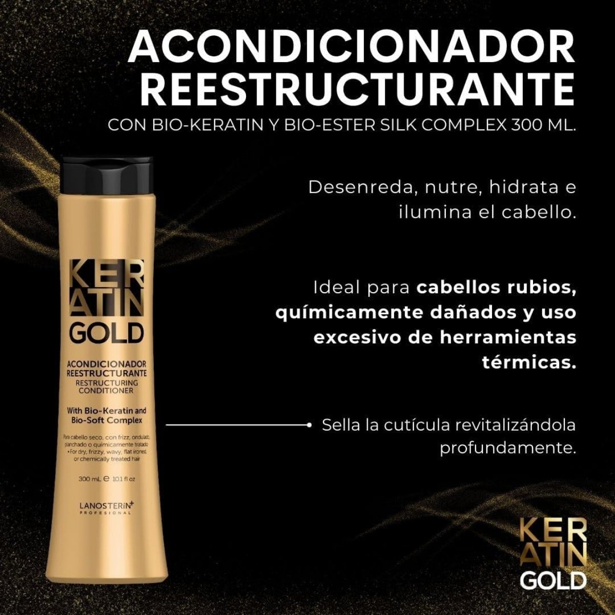 Acondicionador LANOSTERIN reestructurante que hidrata, suaviza y mejora la elasticidad del cabello.