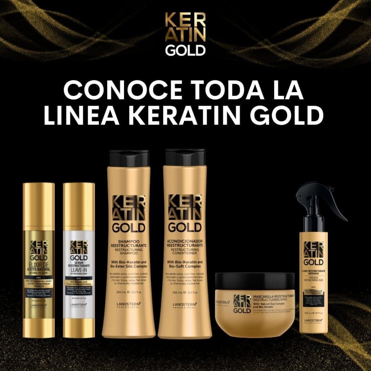 Spray multifuncional LANOSTERIN que hidrata, protege y facilita el peinado, ideal para uso diario.
