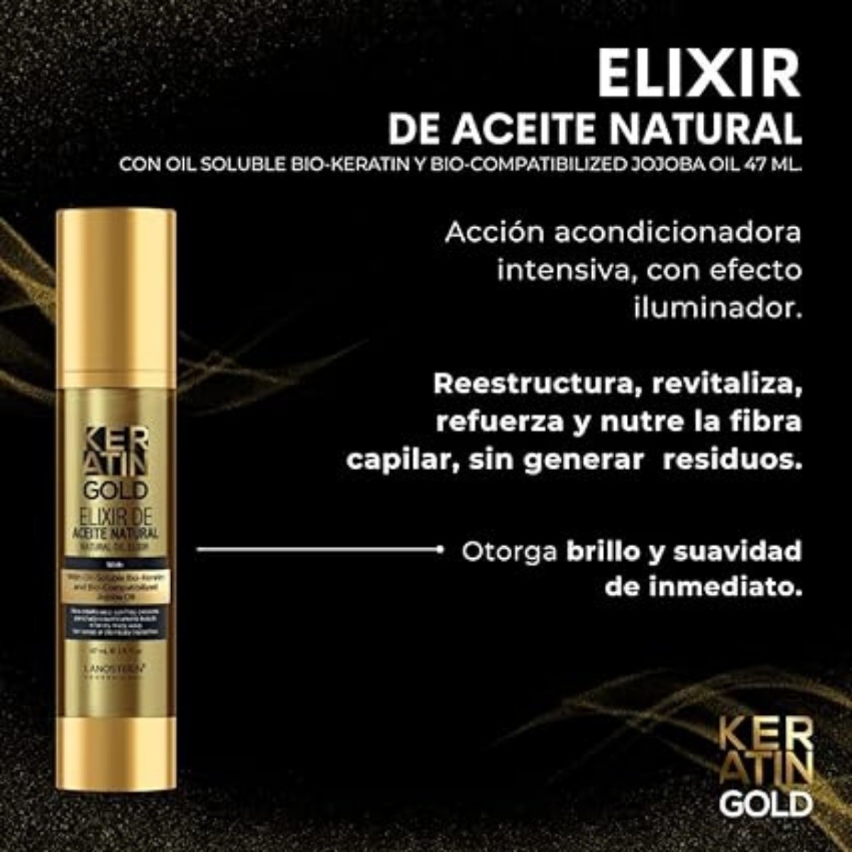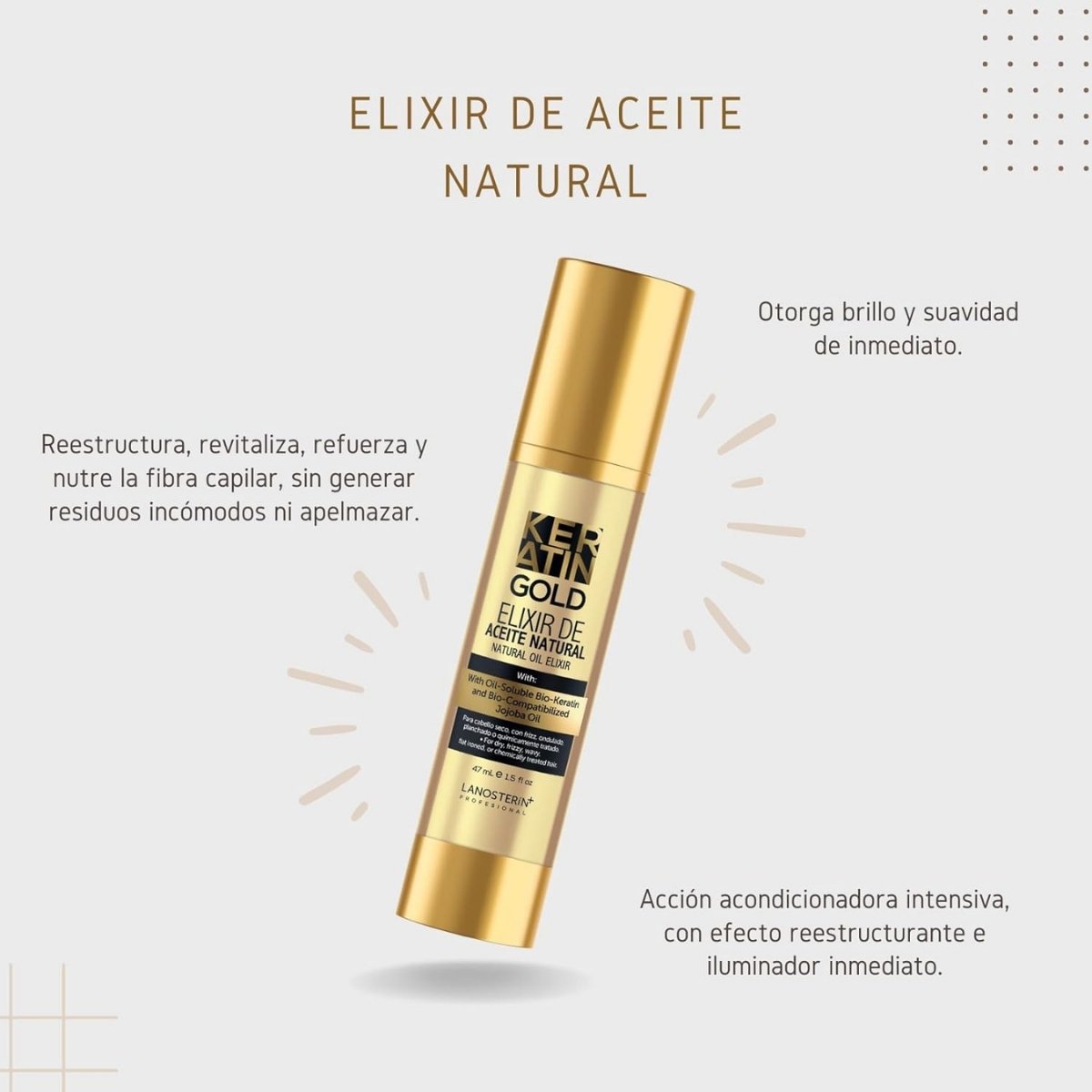 Sérum LANOSTERIN con keratina ideal para sellar puntas, reducir frizz y aportar brillo intenso.
