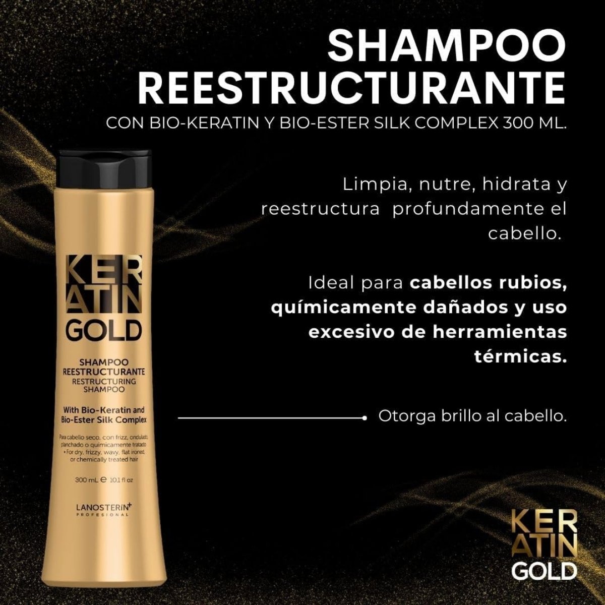 Shampoo LANOSTERIN con keratina que limpia suavemente mientras repara y fortalece la estructura capilar.