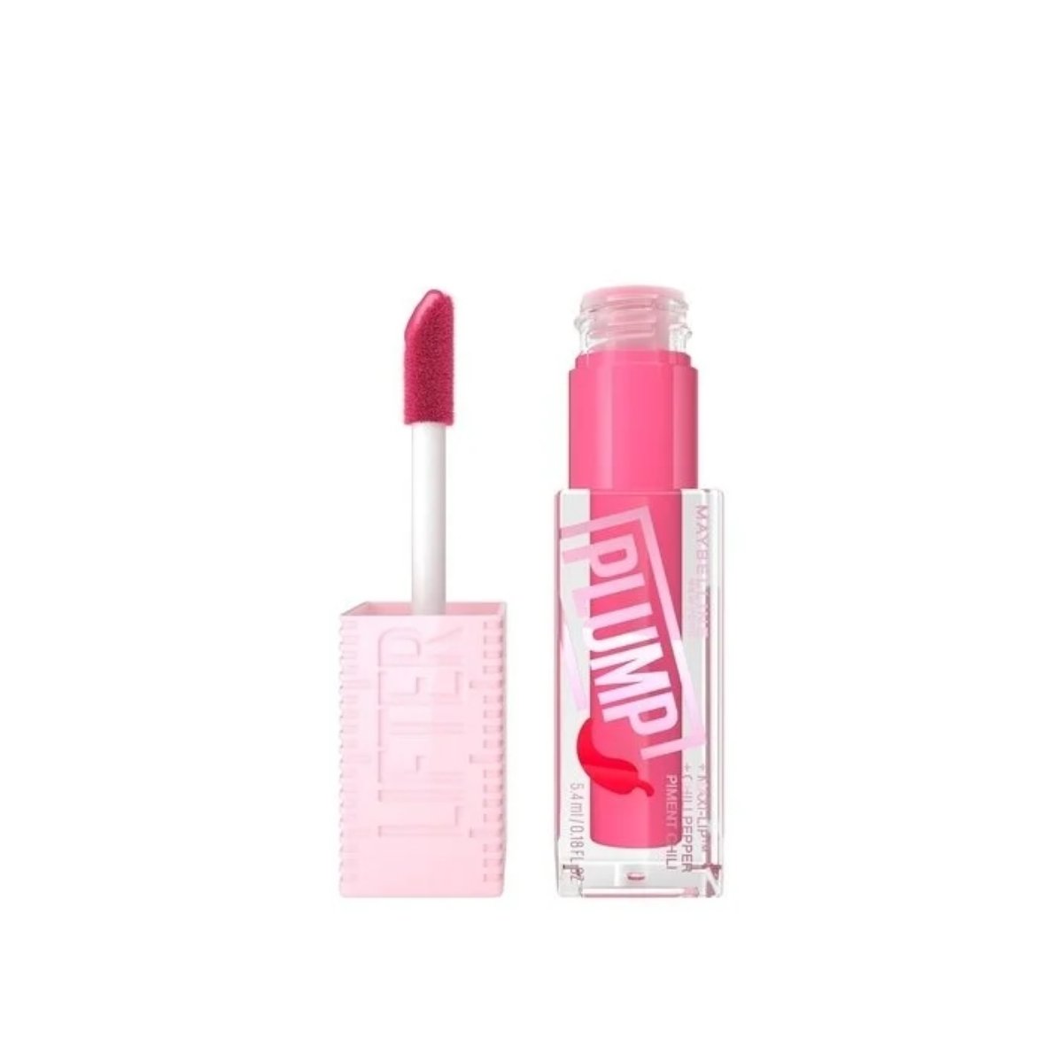 Labial MAYBELLINE Lifter Plump ofrece efecto voluminizador con sensación refrescante, perfecto para un look moderno y atractivo.