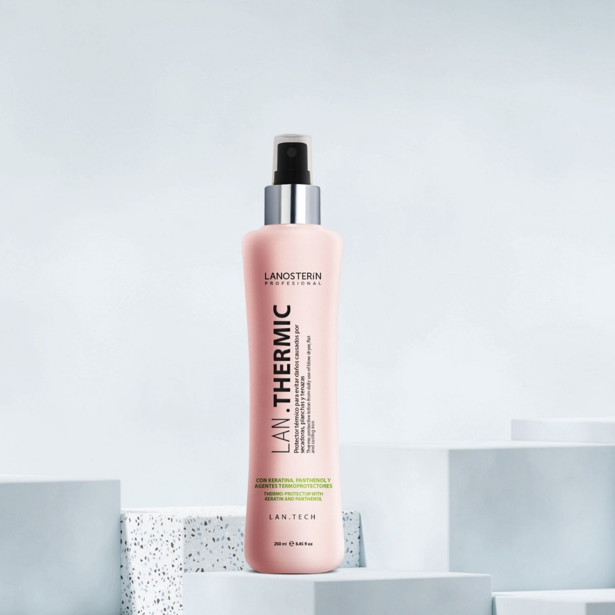 Protector térmico LANOSTERIN de mayor tamaño ideal para uso frecuente en styling con calor.