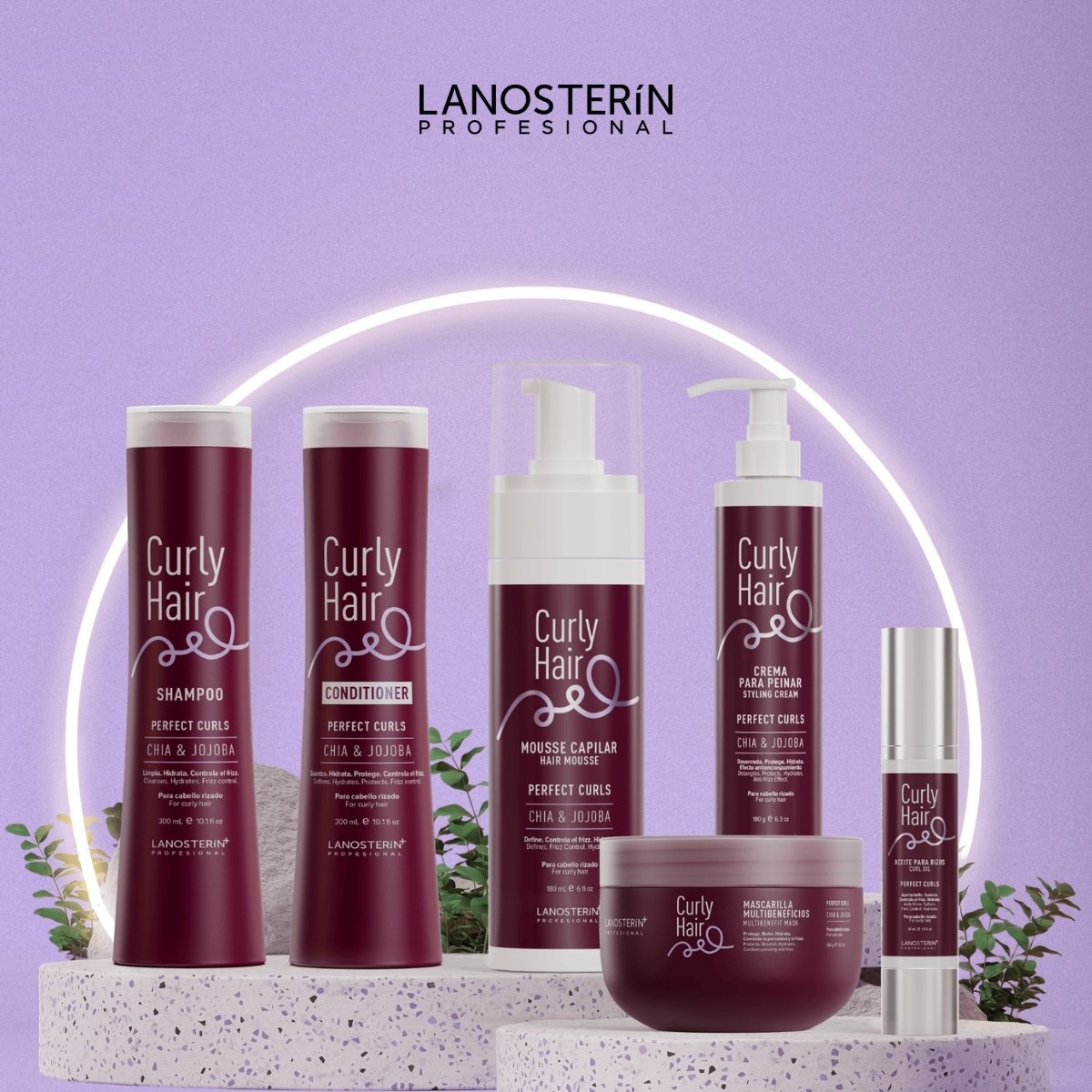 Mascarilla LANOSTERIN multifunción que hidrata, define y nutre cabellos rizados.