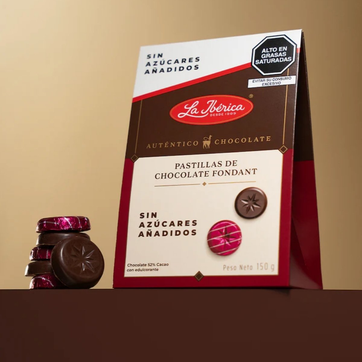 Pastillas Fondant de CHOCOLATE LA IBERICA con 52% cacao, perfectas para repostería o consumo directo.