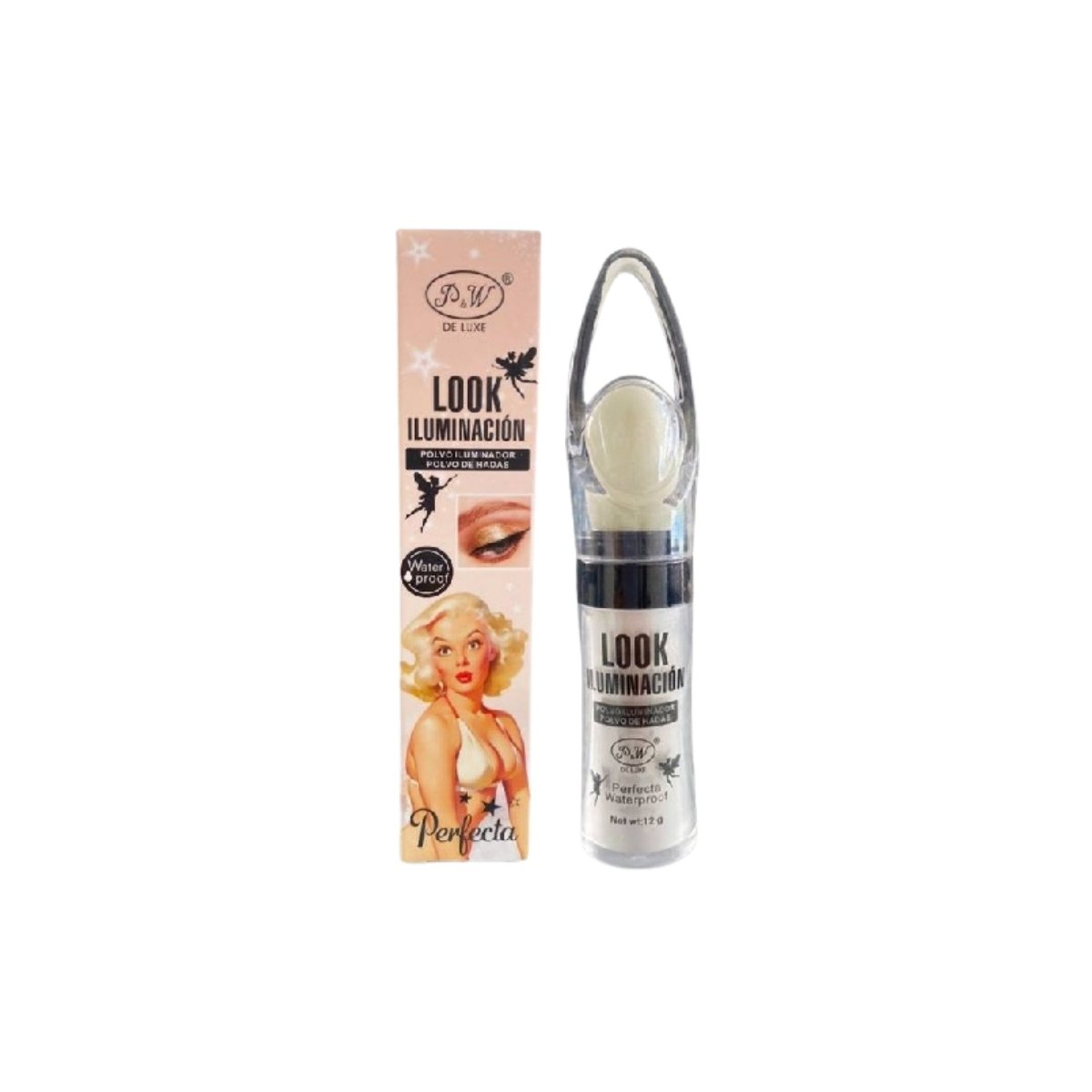 Iluminador en polvo tipo “hada” con acabado brillante y luminoso.