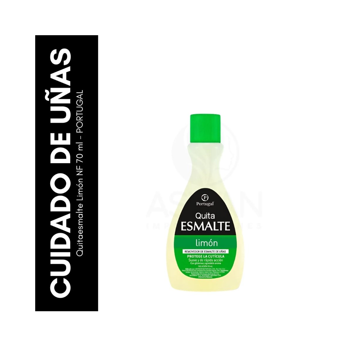 Quita esmalte limón 70 ml PORTUGAL, práctico y fácil de llevar. Elimina el esmalte de forma eficiente mientras cuida las uñas y cutículas.