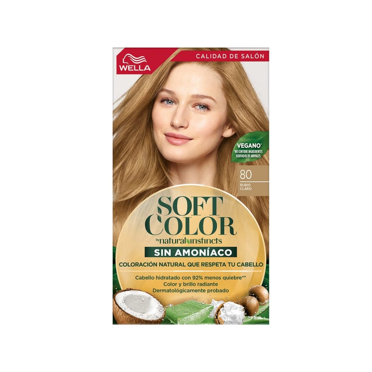 Consigue un rubio luminoso con WELLA Soft Color Rubio Claro 80, ideal para un look natural y brillante.