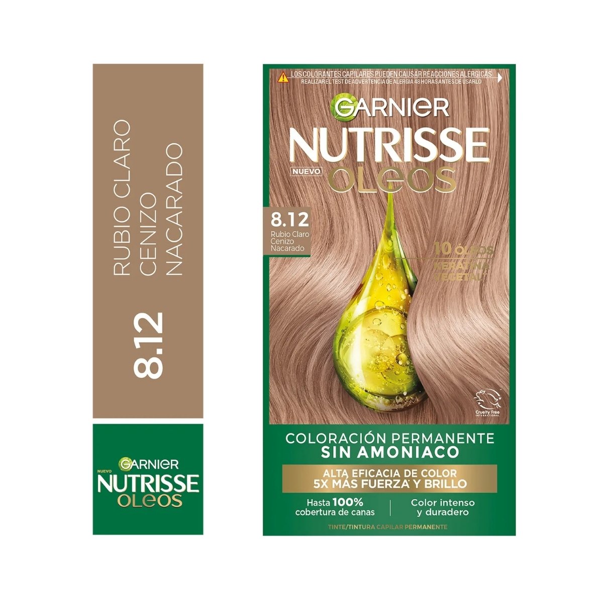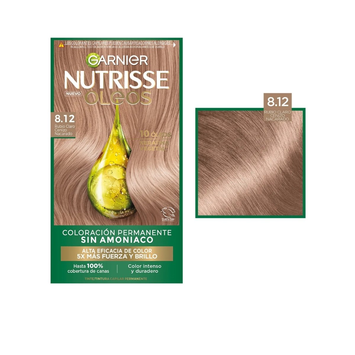 Tinte GARNIER 8.12 sin amoníaco con reflejos nacarados y brillo intenso.