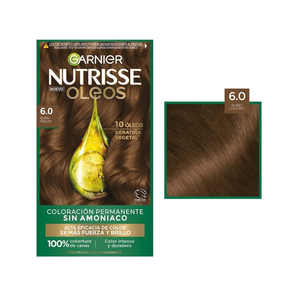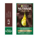 Tinte GARNIER sin amoníaco con aceites, ideal para color intenso sin dañar el cabello.