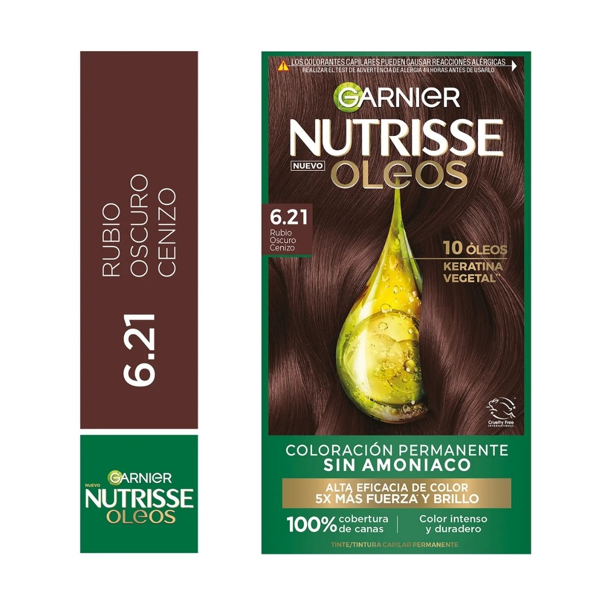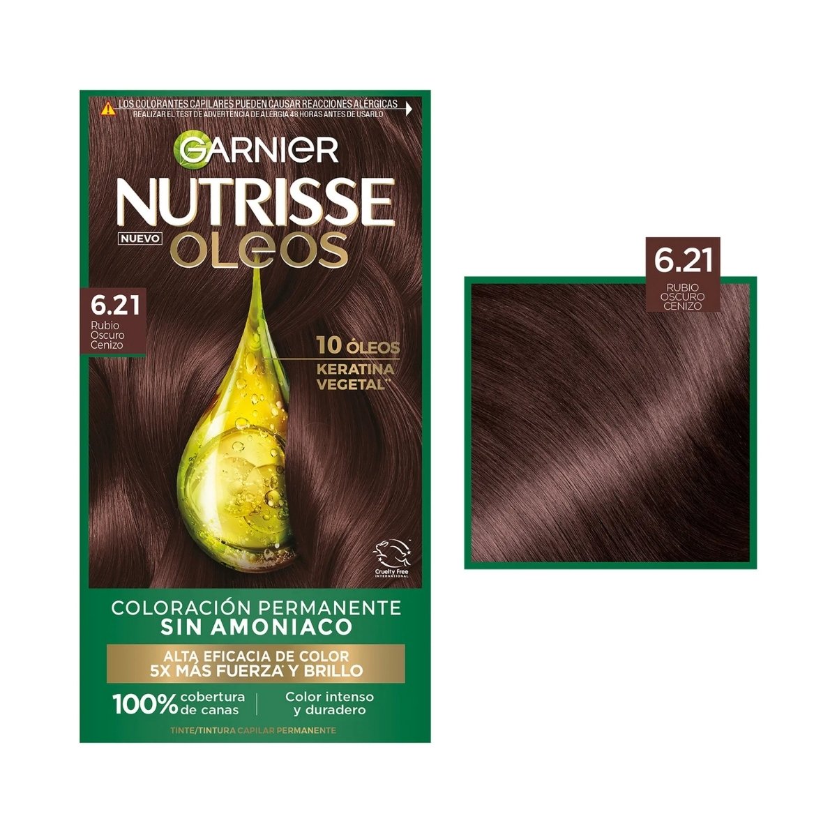 Color GARNIER 6.21 con matices cenizos, perfecto para neutralizar tonos cálidos.