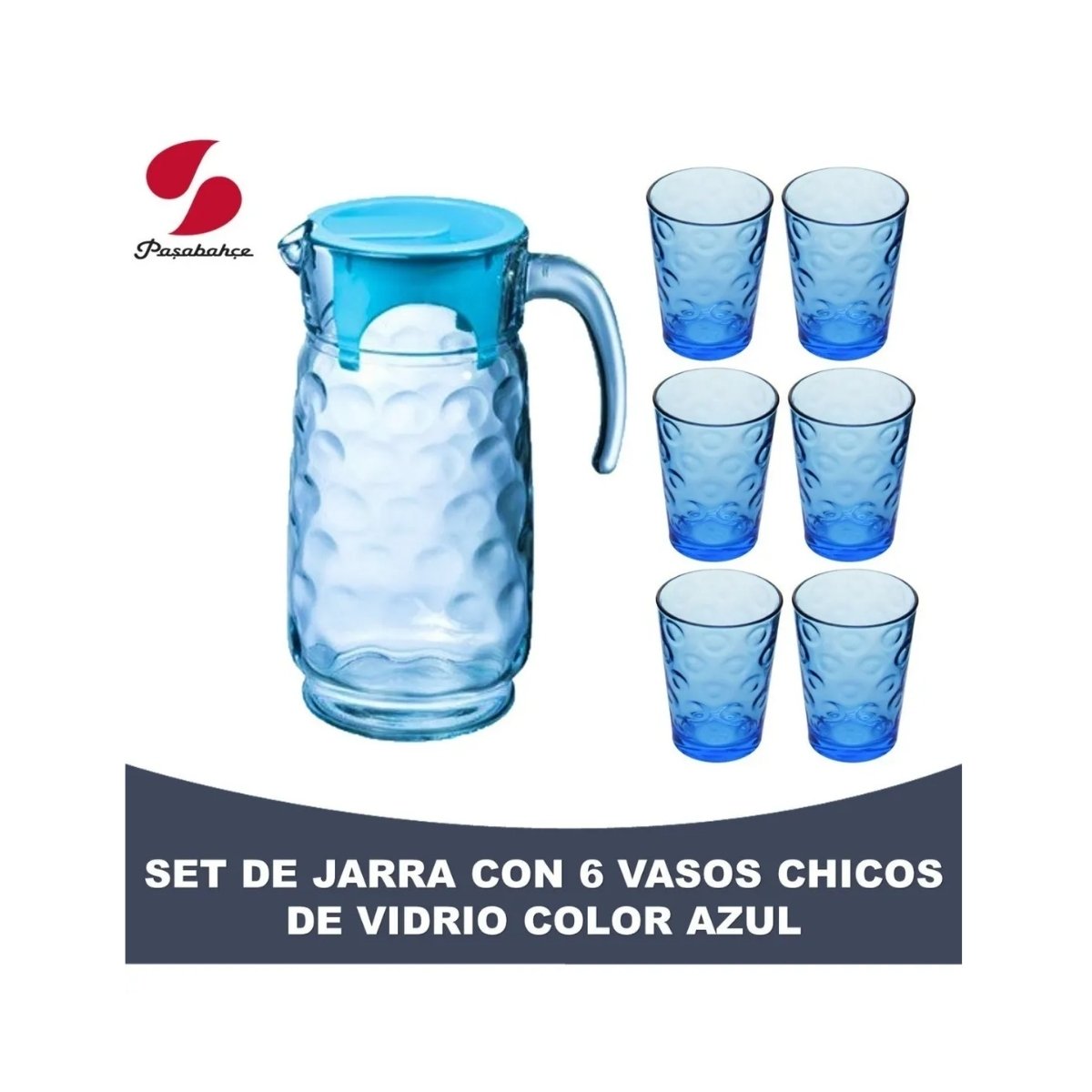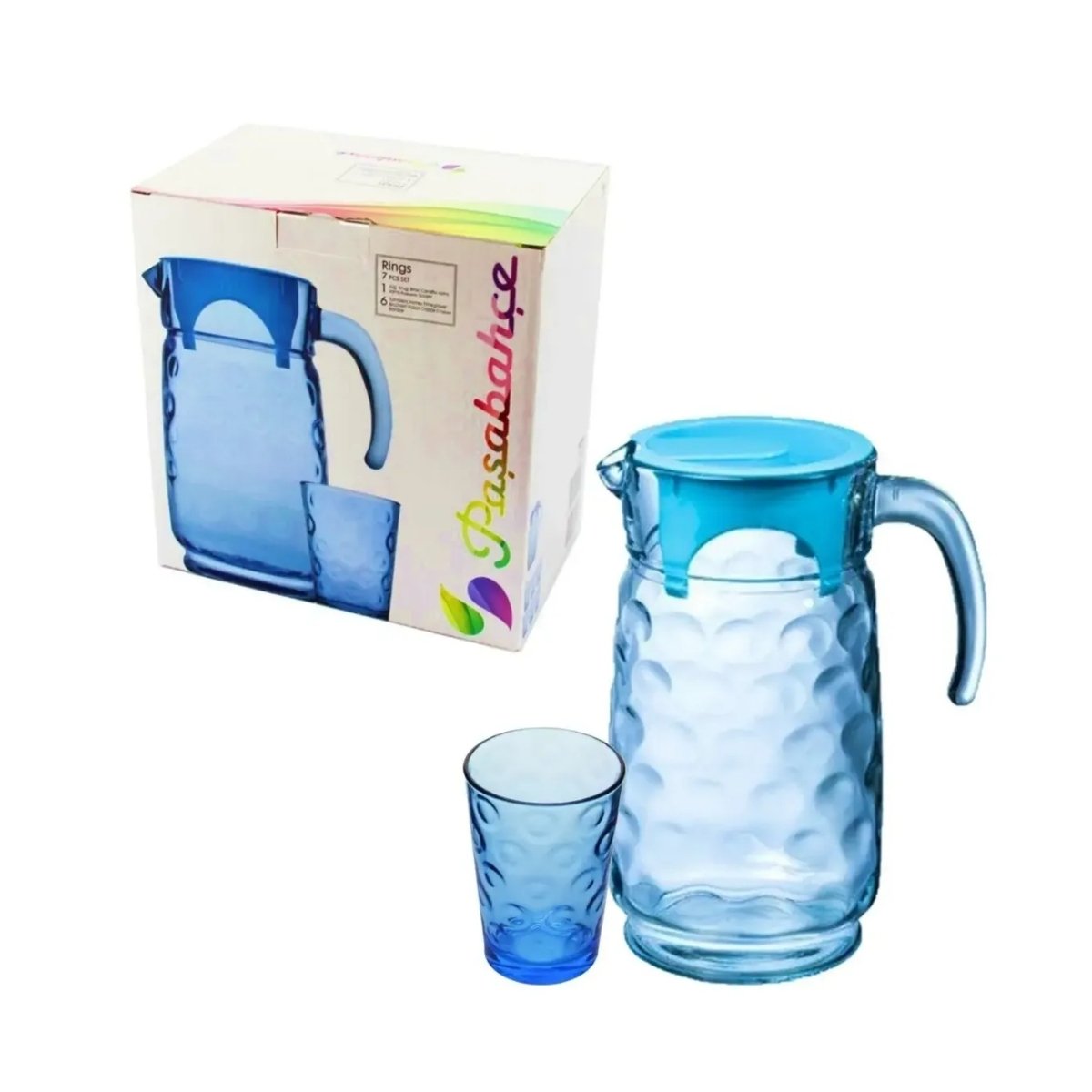 SET 7PZS JARRA VIDRIO 1.40 LT C/T AZUL (AZUR) + 6 VASOS – TURQUÍA