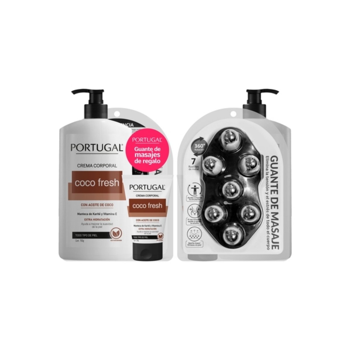 SET CREMA CORPORAL COCO FRESH 700G+TUBO 100G+GUANTE PARA MASAJES PORTUGAL