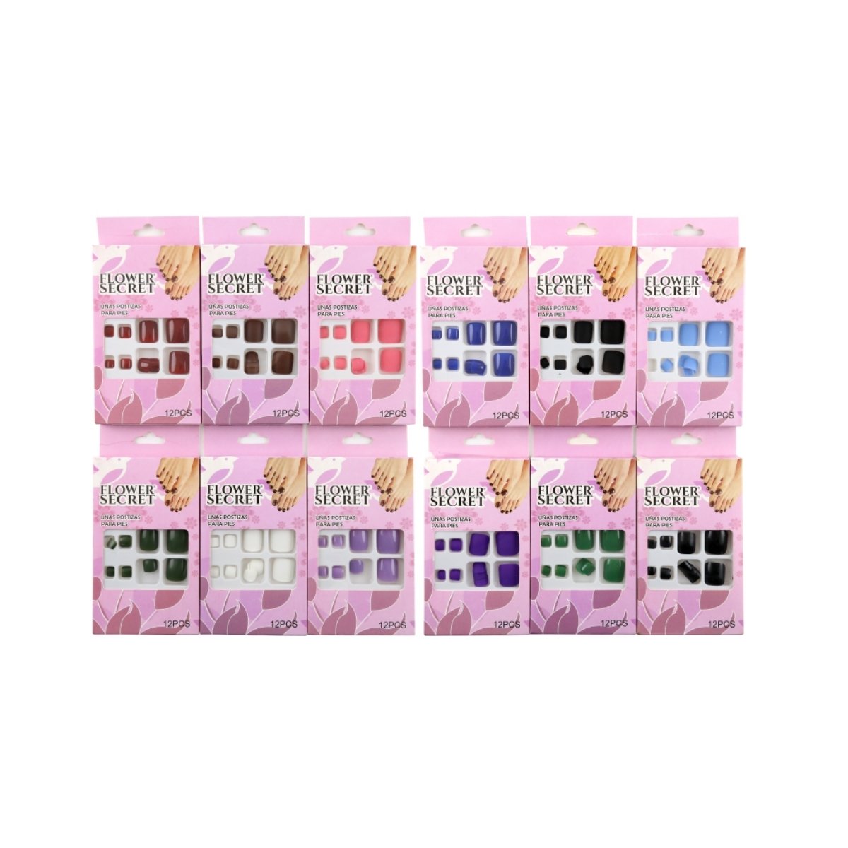 SET X12 UÑAS POSTIZAS PARA PIES FLOWER SECRET