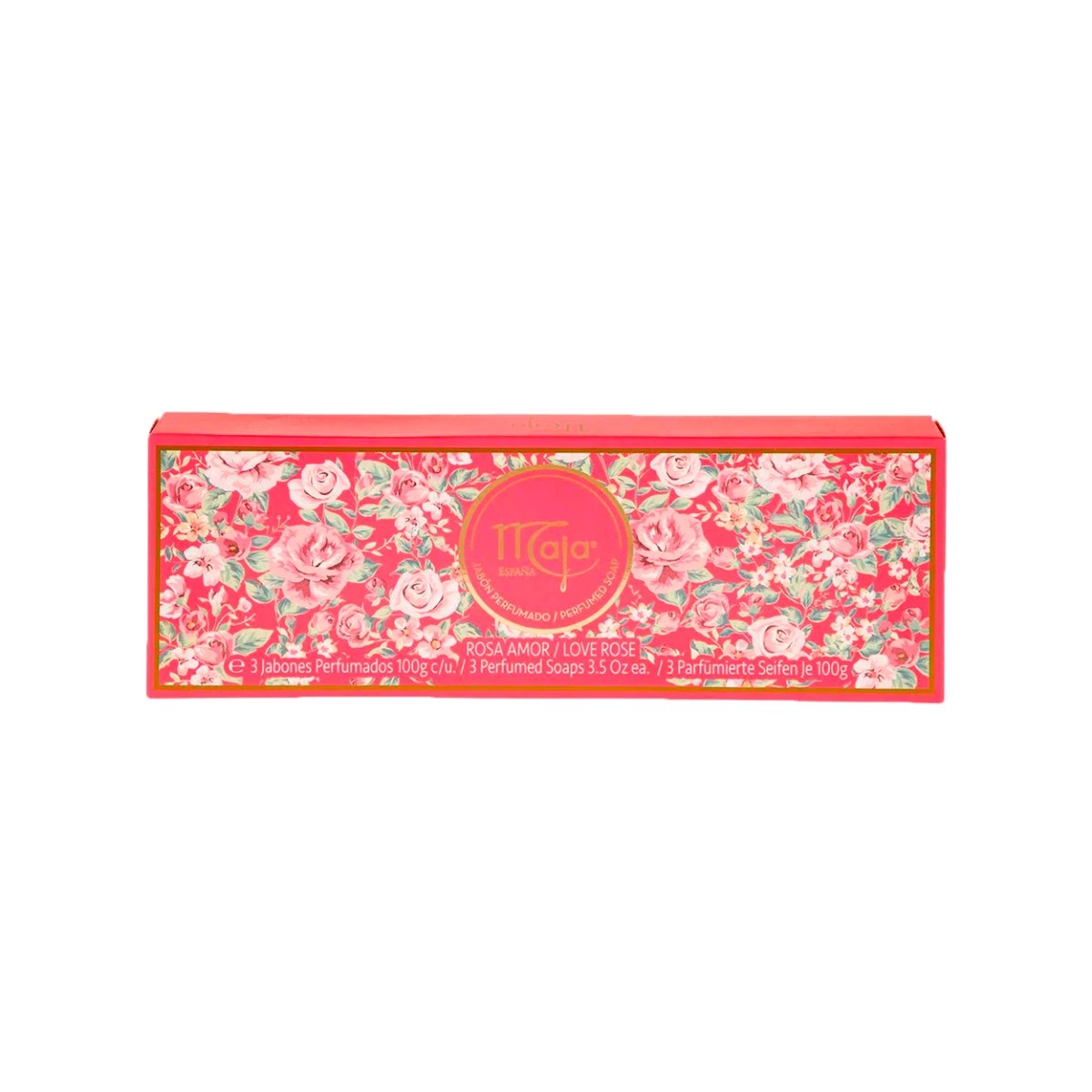 Set de jabones MAJA Rosa Amor x3 que limpian y perfuman la piel con una fragancia floral romántica.