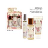 SET X3PZS PERFUME 20ML+SPLASH CON BRILLO 60ML+CREMA DE MANOS Y CUERPO FLOWER SEC