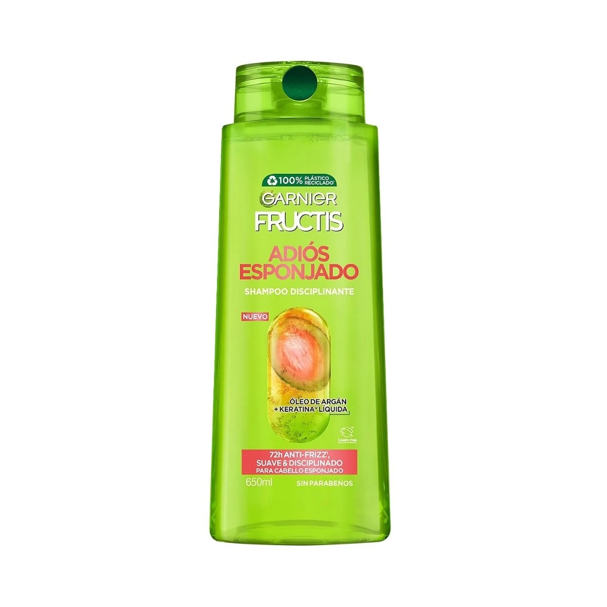 Shampoo GARNIER Fructis Adiós Esponjado que controla el frizz, hidrata profundamente y deja el cabello suave, manejable y brillante.
