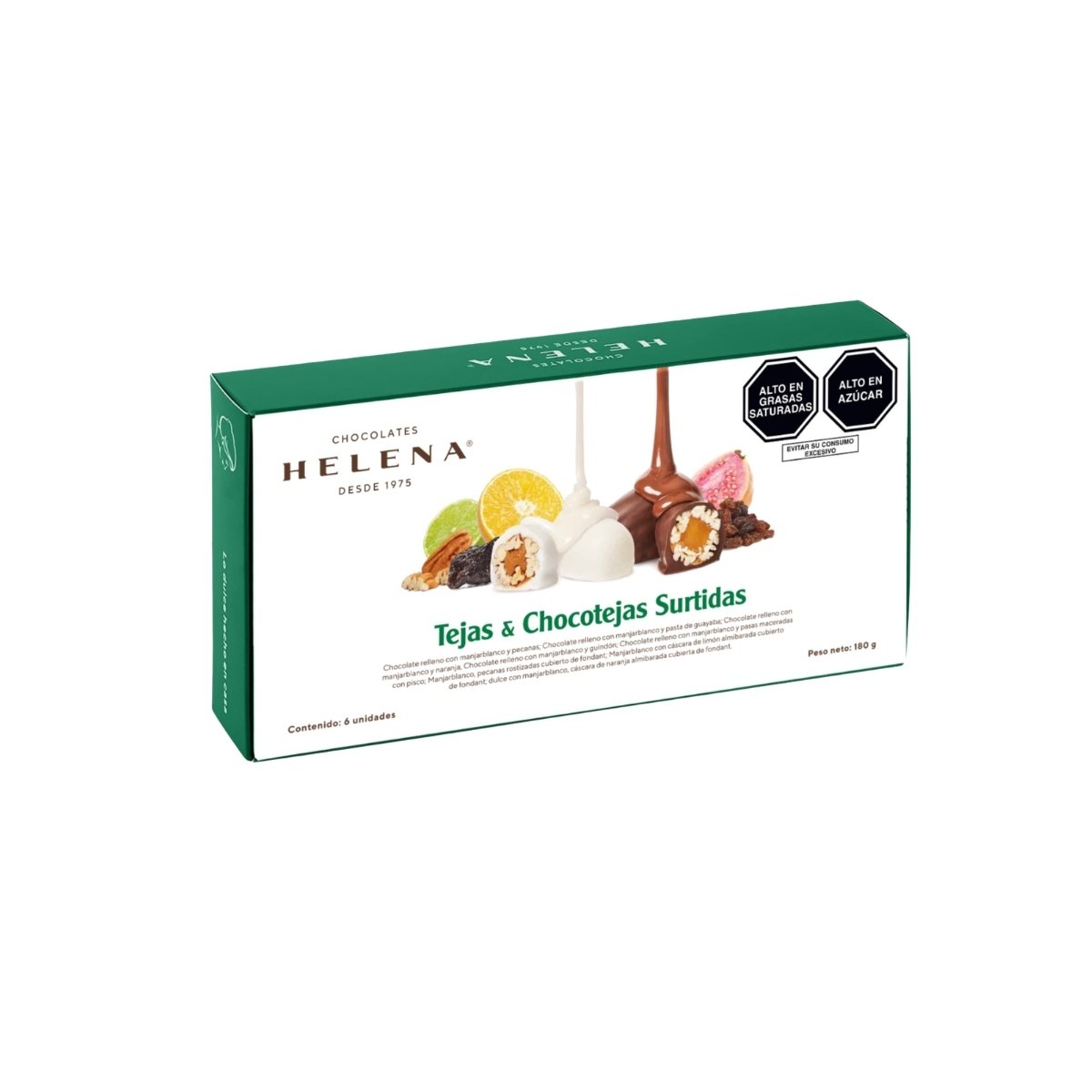 Caja surtida de tejas y chocotejas con CHOCOLATE HELENA x6 unidades, ideal para regalar o degustar diferentes sabores.
