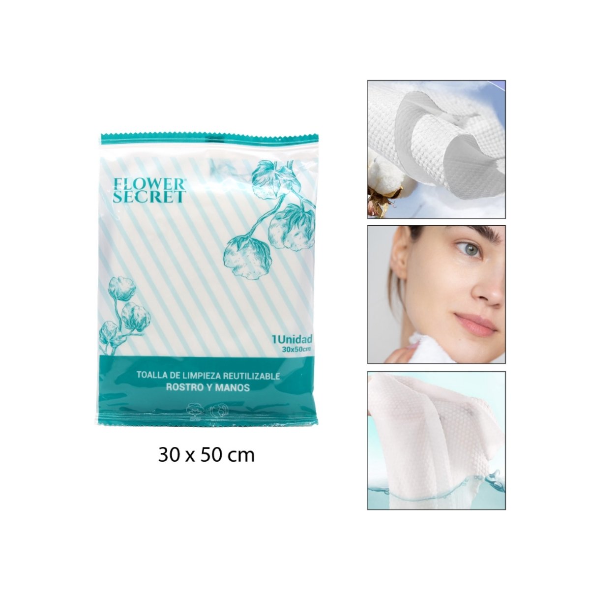 TOALLA DE LIMPIEZA REUTILIZABLE ROSTRO Y MANOS 30X50CM FLOWER SECRET